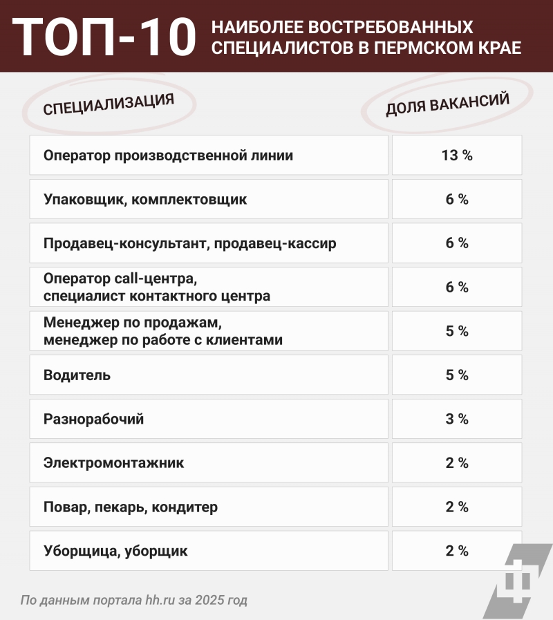 «По данным нашего индекса, в 2025 году в среднем на одну активную вакансию в Прикамье приходилось 5,4 резюме (в 2024-м – 3,4), что считается умеренным уровнем (норма 4,0–7,9). При этом дефицит кадров сохранился в сферах с массовым наймом: прежде всего на производстве, среди рабочего персонала и в розничной торговле», – рассказала «ФедералПресс» менеджер по связям с общественностью hh.ru в ПФО Ирина Егорова.