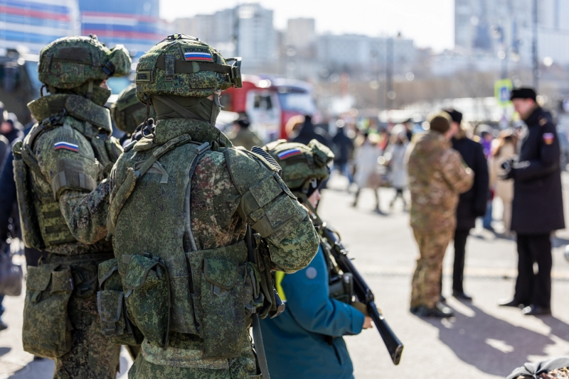 ВЛАДИВОСТОК, 23 февраля, ФедералПресс. В столице Приморья сегодня широко отмечают День защитника Отечества. Для горожан и гостей у национального центра «Россия» организовали концерт, выставку оружия, угощают солдатской кашей и чаем.