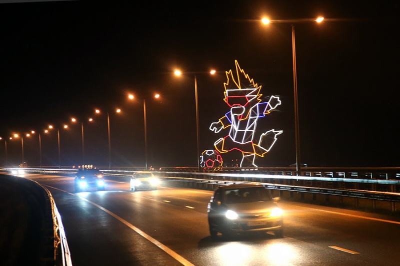 К началу ЧМ-2018 в Калининградской области прошло торжественное открытие конструкции в форме волка Забиваки. Причем ночью она светится, а вообще служит опорой для линии электропередач и в высоту достигает 37 метров, как сообщает информационное агентство «Невские новости».