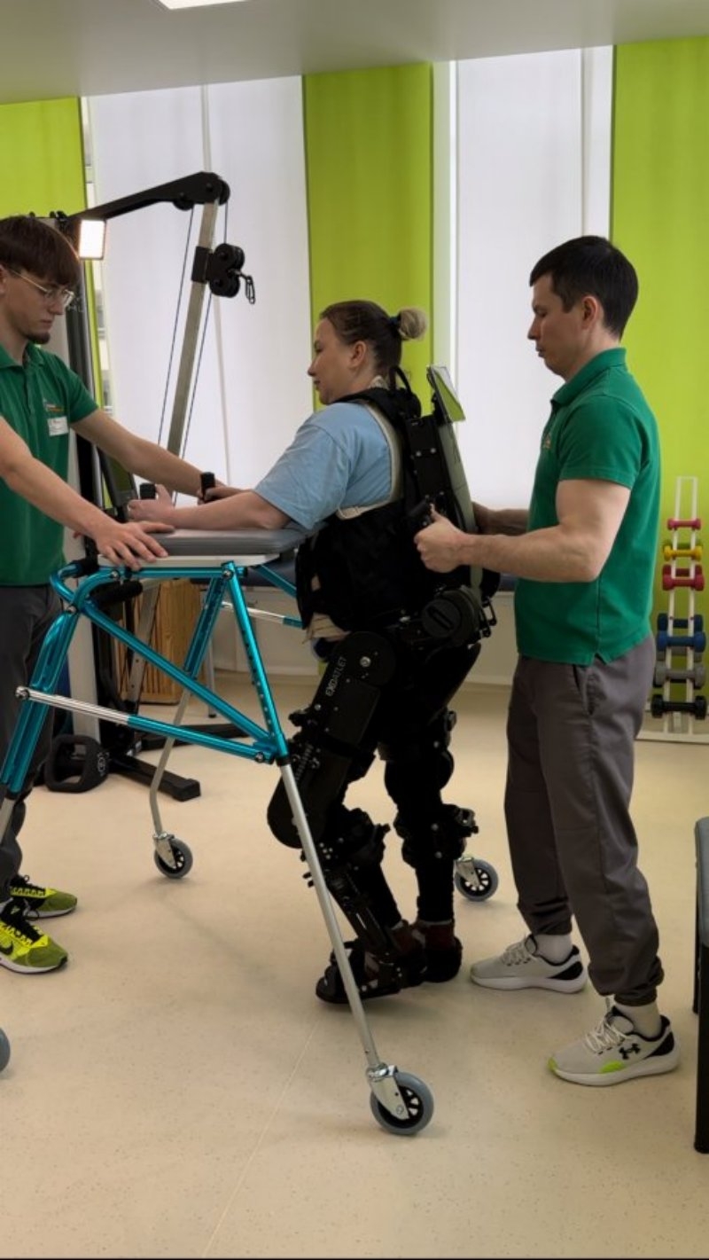 Экзоскелет может помочь при различных травмах и заболеваниях. Как пояснила заведующая отделением медицинской реабилитации Ольга Хамидуллина, его применяют не сразу. Вначале пациент делает особые упражнения лежа, затем стоя, а потом при помощи специального локомата начинает ходить на месте.