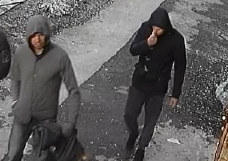Первый возможный подозреваемый был одет в куртку серого цвета с капюшоном, жилет жёлто-синего цвета и синие джинсы, а второй – в куртку тёмно-синего цвета, с капюшоном, серые спортивные штаны и чёрные кроссовки.