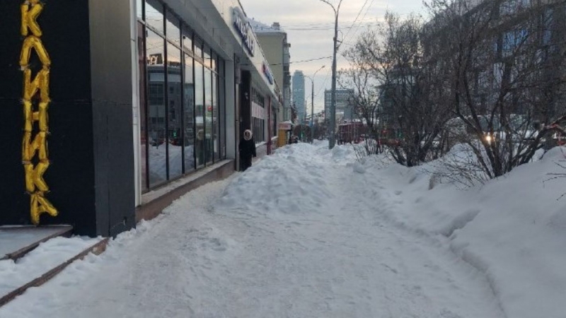 Самое интересное, что на соседних участках тротуара появляются дворники, там пешеходная зона расчищена. Но куча в «проклятом месте» продолжает лежать. За минувшие дни снег спрессовался до каменного состояния, и раскидать его вручную уже не представляется возможным, рассказал горожанин.