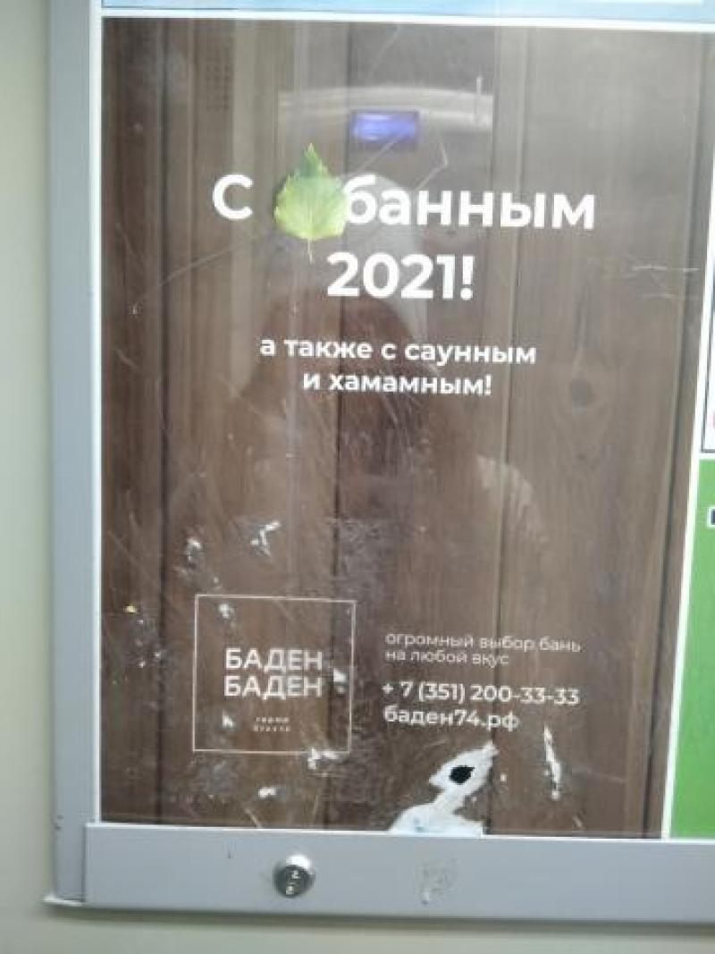 УФАС в Челябинске проверяет рекламу термального курорта «Баден-Баден». Специалистов ведомства заинтересовала рекламная листовка с надписью: «С *банным 2021!» Она была размещена на подъезде многоквартирного дома в Челябинске. По мнению УФАС, такое словосочетание может вызывать ассоциации с нецензурной бранью.