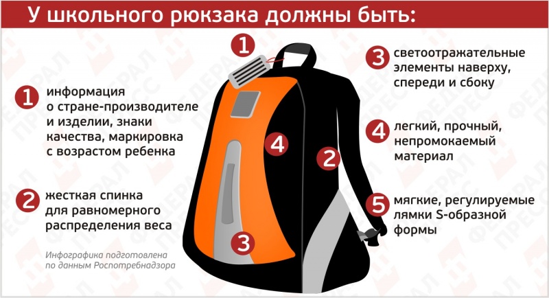 В Федеральной службе по надзору в сфере защиты прав потребителей и благополучия человека (Роспотребнадзор) рассказали, что нужно учитывать при выборе школьного рюкзака для своего ребенка. Информация опубликована на сайте ведомства.