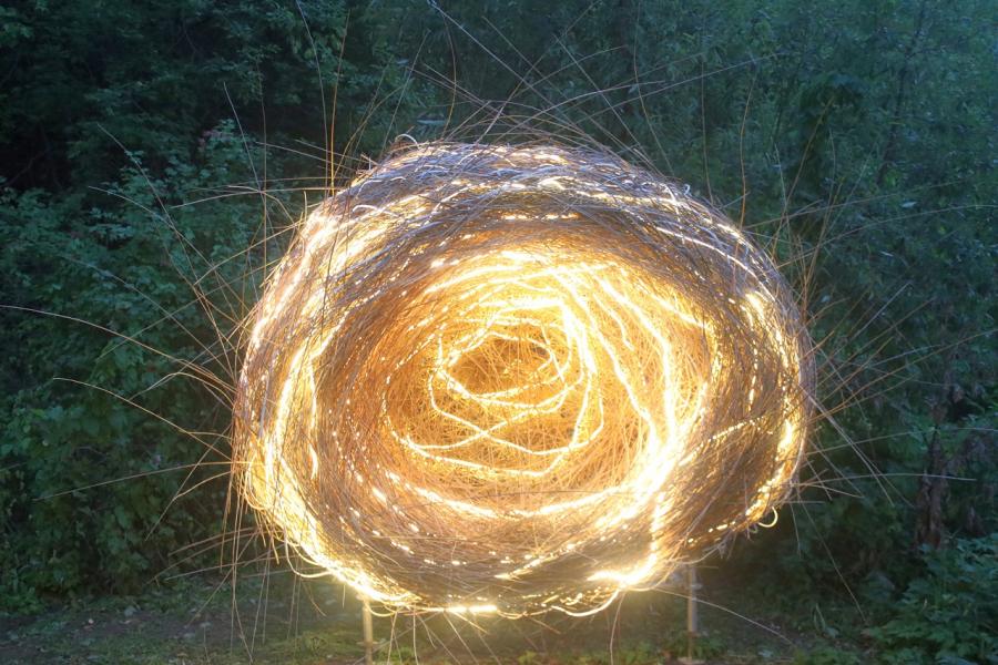 Гнездо NIDUM, привезенное Splaces Studio из Санкт-Петербурга, представляет собой аудиореактивную световую скульптуру, звучащую голосами карельских птиц. NIDUM в переводе с латинского означает «гнездо». Инсталляция состоит из шести тысяч ивовых веток, собранных в Карелии. Искусственный интеллект настроен так, чтобы гнездо «щебетало» в ответ на речь людей.