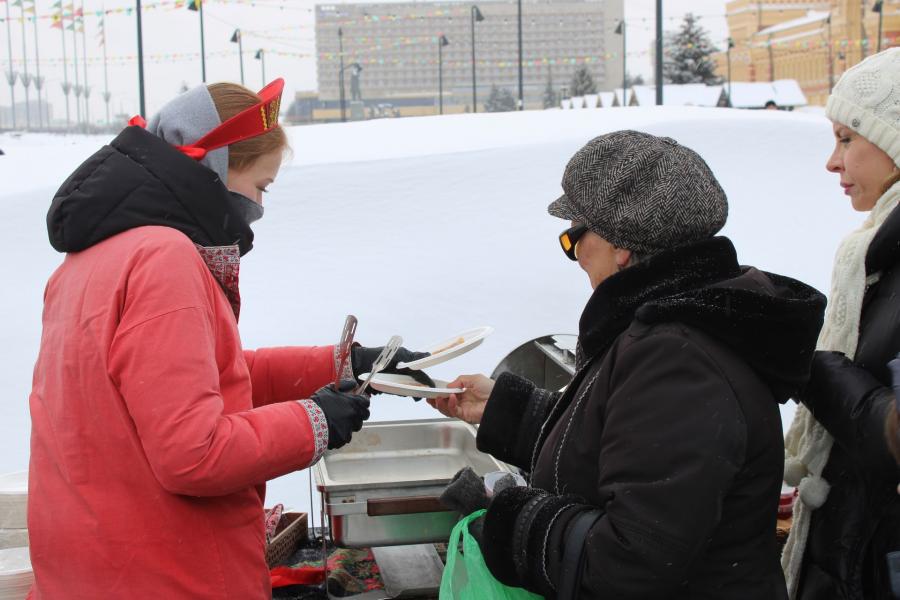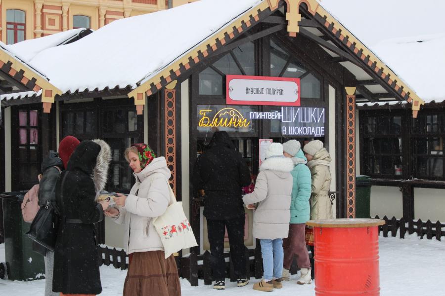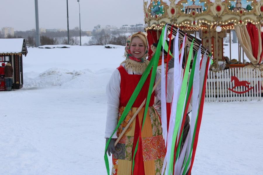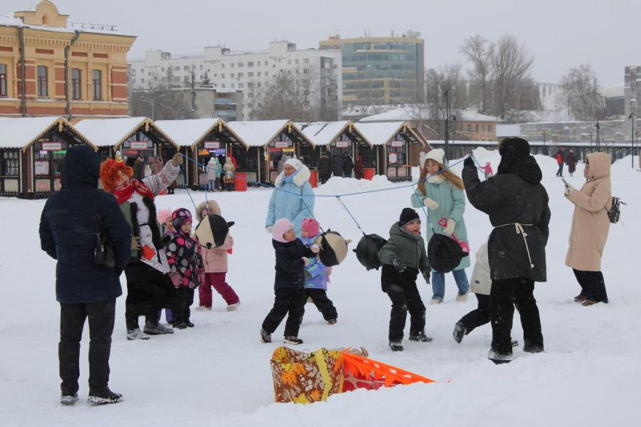 В субботу, 21 февраля, перед главным ярмарочным домом развернулись традиционные русские забавы: гости водили хороводы, пели песни, участвовали в мастер-классах и грелись у печи под гармонь. Все желающие могли прокатиться на карусели и сделать яркие снимки в праздничных фотозонах.